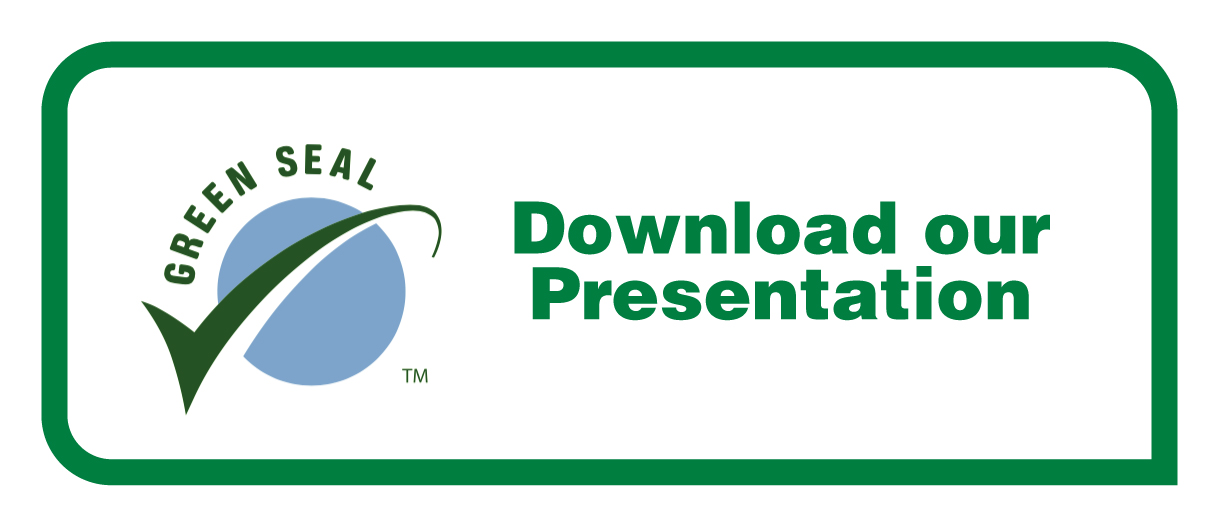 These products meet Green Seal™ Standard GS-37, GS-51, or GS-53, as applicable, based on effective performance, concentration of product, minimized/recycled packaging, and protective limits on VOCs and human & environmental toxicity. Non-aqueous liquids have alternate thresholds for acute toxicity, and added requirements for packaging and labeling. GreenSeal.org.